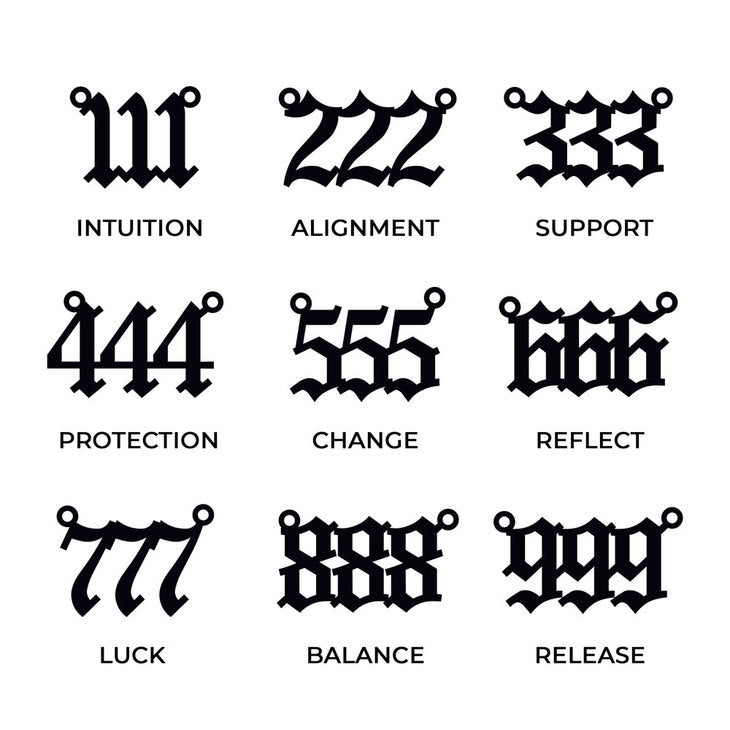 - choose angel number 111 (intuition), 222 (alignment), 333 (support), 444 (protection), 555 (change), 666 (reflect), 777 (luck), 888 (balance), 999 (release)
