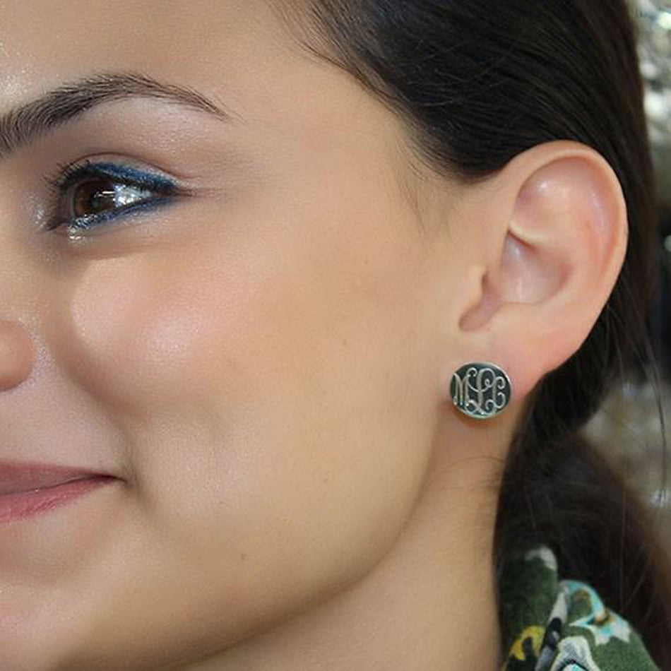 Our small round personalized sterling silver stud earrings are perfect to complete your look. They measure 17mm. Monogram with 1 initial or 3!. Perfect gift idea! Available in Gold Tone too.